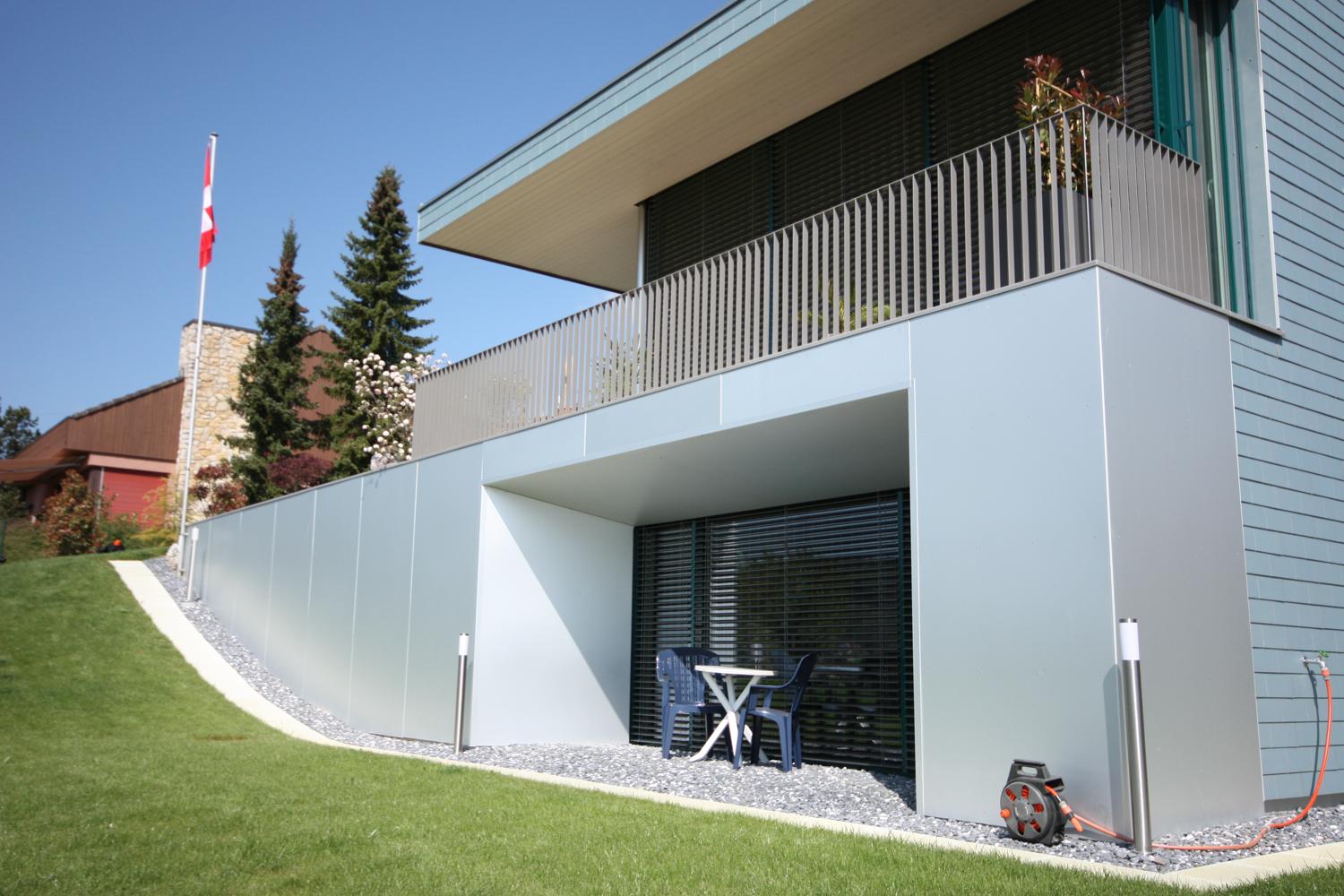 Werden die entsprechenden Blechverkleidungen in der Aussenhaut eines Gebäudes eingesetzt, kommt das wärmebrückenfreie Bauen zum Tragen. Durch die jahrelange Erfahrung in der Blechverarbeitung stellt diese Herausforderung bezüglich Isolation kein Problem für uns dar. Jedes Detail wird technisch einwandfrei konstruiert und produziert. Falls der Kunde es wünscht, werden alle bestellten Bauteile von unseren erfahrenen Monteuren fachmännisch montiert