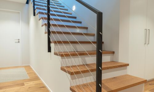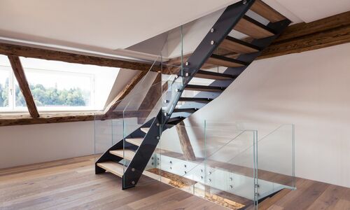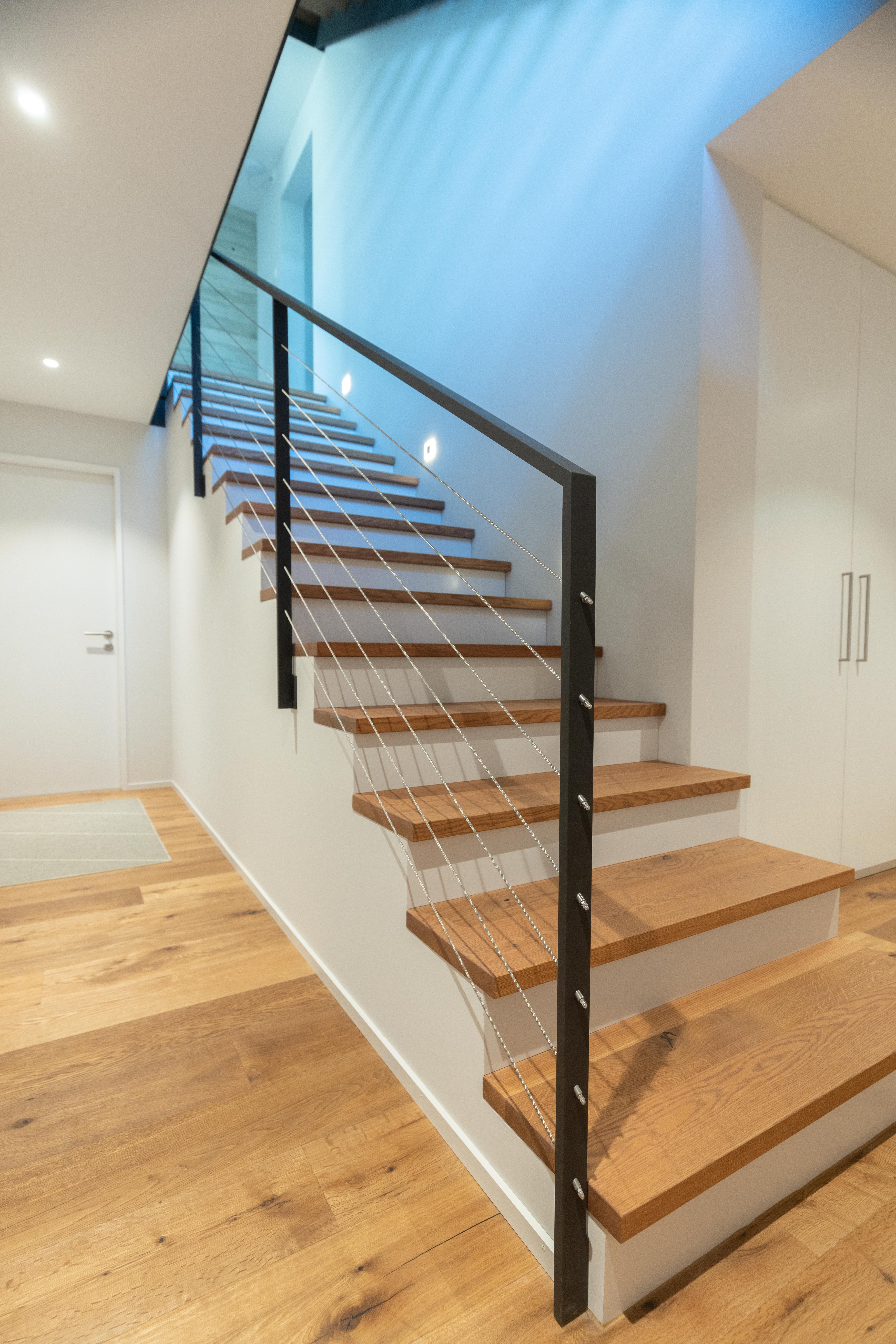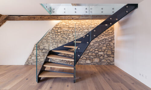 Mittels einer Treppe gelangen Sie von einer Etage in die Nächste. Aber eine Treppe kann noch viel mehr. Dieses enorm wichtige Bauteil kann wichtige Akzente bezüglich der Wahrnehmung eines Gebäudes setzen. Sie dient gleichermassen als Blickfang sowohl auch als Erschliessung zweier Stockwerke.