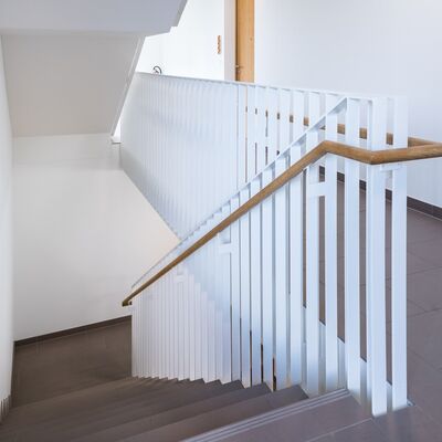 Die ganz in weiss gehaltenen Treppengeländern, stehen für maximale Sicherheit und Schutz. Solide gebaut und dennoch wirken sie nicht erdrückend.