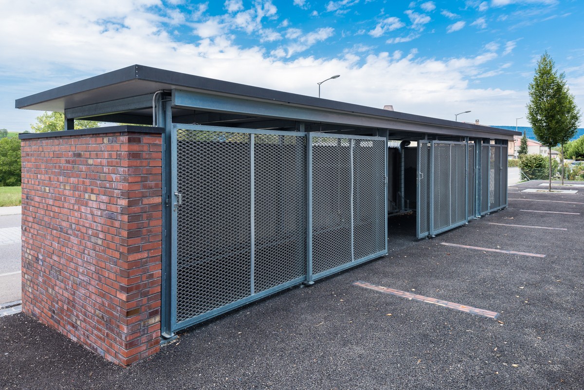 Der bis ins letzte Detail ausgeklügelte Velounterstand, besticht durch seine formschöne Erscheinung. Ohne Kompromisse fügt er sich lückenlos in das Gesamtkonzept der Liegenschaften. Die Schiebetüren ermöglichen einen benutzerfreundlichen Gebrauch der Räumlichkeiten.